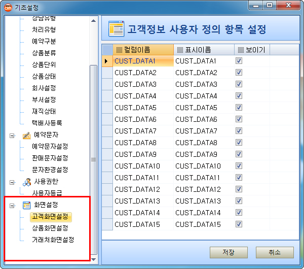 고객관리, 상품관리, 거래처 관리시 추가 데이터를 등록 할 수 있습니다.